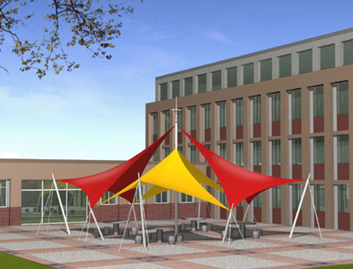 由于張拉膜景觀的自身特性,它可以滿足許多不同的建筑功能要求。優(yōu)秀的膜結(jié)構(gòu)設(shè)計(jì)使它與自然環(huán)境、歷史及現(xiàn)代的城市景觀相結(jié)合,成為周圍環(huán)境的補(bǔ)充和焦點(diǎn)。張拉膜景觀屋面的一個(gè)重要作用就是可以抵御各種自然天氣所帶來的傷害,利用建筑本身的優(yōu)勢來盡可能的減少能量的消耗,并且還能保持建筑物內(nèi)部的舒適性。張拉膜與其他的結(jié)構(gòu)相比,突出的優(yōu)勢是對環(huán)境的可移動(dòng)性,因?yàn)槟げ木哂休p柔的特點(diǎn),在運(yùn)輸?shù)臅r(shí)候十分方便,而且搭建的方法很簡單,可以迅速完成搭建,在閑置時(shí),所占的空間也很小,所以張拉膜景觀可以在不同的地方,多次的進(jìn)行拆除和搭建,特別是在發(fā)生緊急情況的時(shí)候,在短時(shí)間內(nèi)就需要為人們提供庇護(hù)所的時(shí)候,張拉膜景觀的可移動(dòng)性和靈活性就會(huì)凸顯的更加明顯。它們對現(xiàn)代城市的發(fā)展和建筑功能的轉(zhuǎn)變具有重要的意義。