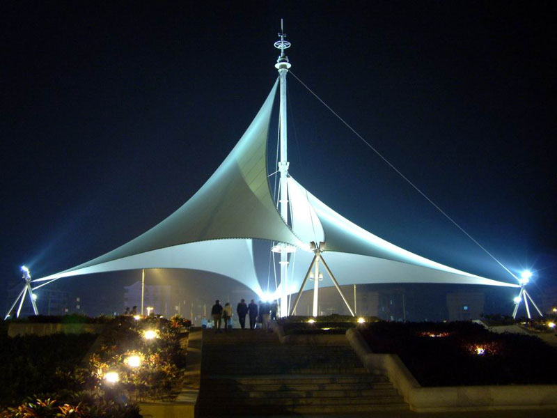 我們還會(huì)發(fā)現(xiàn),張拉膜有一個(gè)非常好的特點(diǎn),就是它使用的材料都具有一定的特殊性。所以我們在進(jìn)行使用時(shí),它具有很好的防火性。我們會(huì)發(fā)現(xiàn)這些材料,都是用特殊的涂層,再進(jìn)行操作。所以我們在進(jìn)行使用過程當(dāng)中,即使有火災(zāi)發(fā)生,它也不會(huì)有任何的問題。因?yàn)樗姆阑鹦Ч欠浅:玫?,現(xiàn)在大部分用張拉膜進(jìn)行操作的這些空間,它的阻燃性都會(huì)非常的好。所以現(xiàn)在有很多的公共區(qū)域,都是按照這種方式來進(jìn)行整個(gè)空間的搭建,就是覺得它的防火性能很好。
