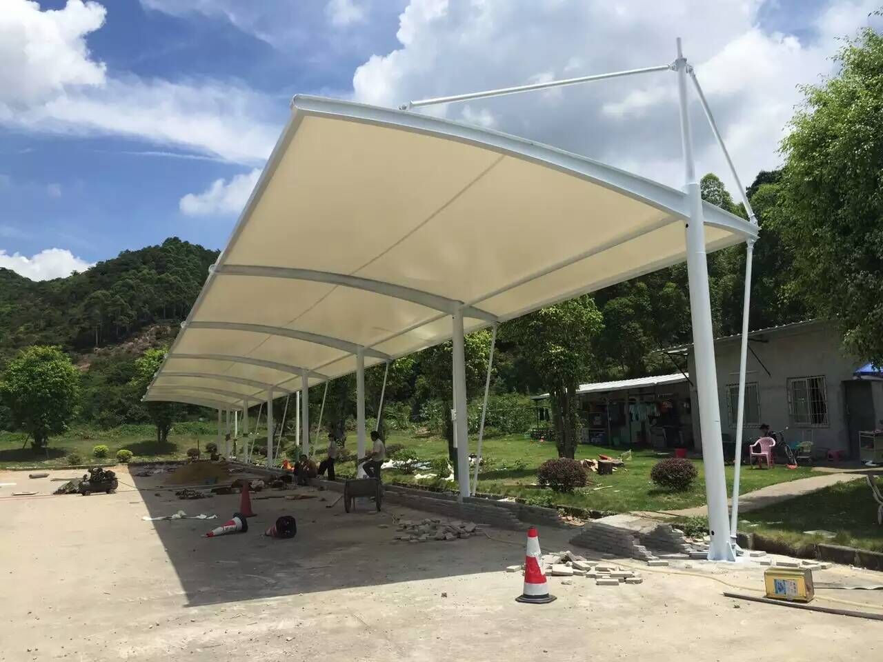 另外我們當(dāng)中的膜結(jié)構(gòu)材料有很多種,在進(jìn)行選擇時(shí),可以根據(jù)各種不同的修建場(chǎng)地選擇不同的材料來(lái)進(jìn)行修建。這樣,如果有一些是臨時(shí)進(jìn)行搭建的車(chē)棚,他在進(jìn)行材料選擇時(shí),就可以選擇相對(duì)比較便宜的材料。它的成本就會(huì)比較低一些。所以我們?cè)诓捎眠@種方式進(jìn)行車(chē)棚的搭建,其實(shí)它的靈活度比較高,而且它也有多種可以進(jìn)行選擇的方式,對(duì)于我們的使用會(huì)比較有幫助一些。因此越來(lái)越多的人,會(huì)采用這種方式來(lái)進(jìn)行車(chē)棚搭建。