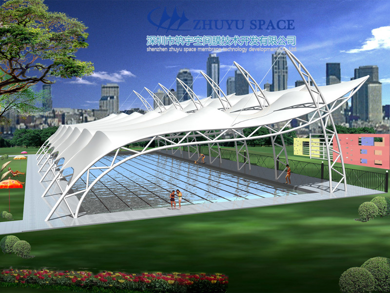 深圳市筑宇空間膜技術(shù)開發(fā)有限公司 是從事張拉膜大型體育看臺場館、膜結(jié)構(gòu)車棚、游樂園膜結(jié)構(gòu)、收費(fèi)站張拉膜、污水池加膜結(jié)構(gòu)遮蓋、氣膜建筑,膜結(jié)構(gòu)體育場館,ETFE膜建筑、空間膜、索膜、景觀膜、遮陽篷、的設(shè)計(jì)、制作安裝及膜結(jié)構(gòu)工程維護(hù)服務(wù)的專業(yè)公司。免費(fèi)索取更多精品泳池膜結(jié)構(gòu)方案請致電:0755-82992146