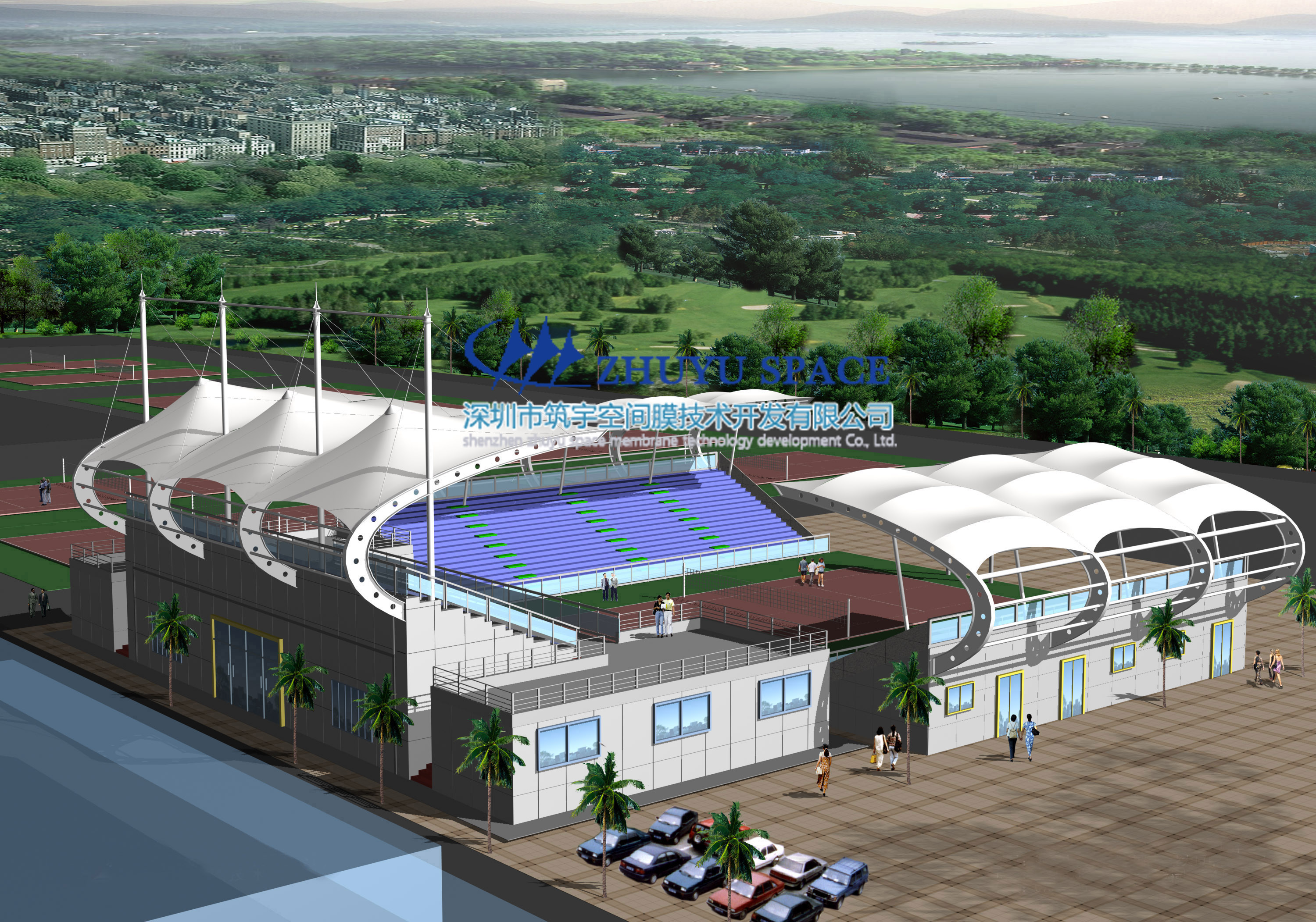 - 4.膜結(jié)構(gòu)動力損耗低,膜材有較高的反射性及較低的光吸收低,而且熱傳導性較低,這極大程度上阻礙太陽能進入室內(nèi),而膜材的半透明性確保了適當?shù)淖匀还饨o室內(nèi)照明。