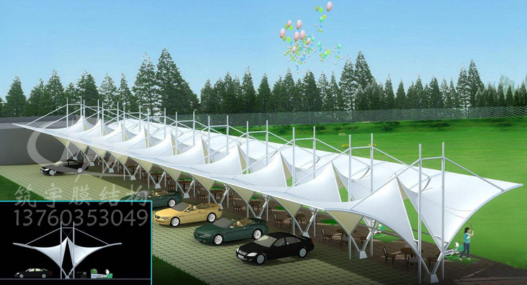膜結(jié)構(gòu)作為一種新型材料,因?yàn)槠渥灾剌p、施工快、美觀等原因大量應(yīng)用于現(xiàn)代建筑,膜結(jié)構(gòu)車棚的興起,實(shí)現(xiàn)了車棚的實(shí)用性,又兼顧了美觀性。
